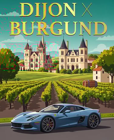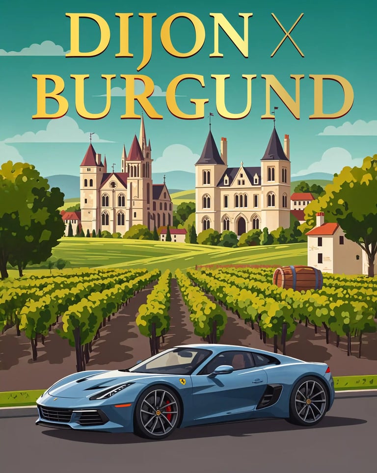 Driving durch Weinberge und mittelalterliche Orte Burgunds.