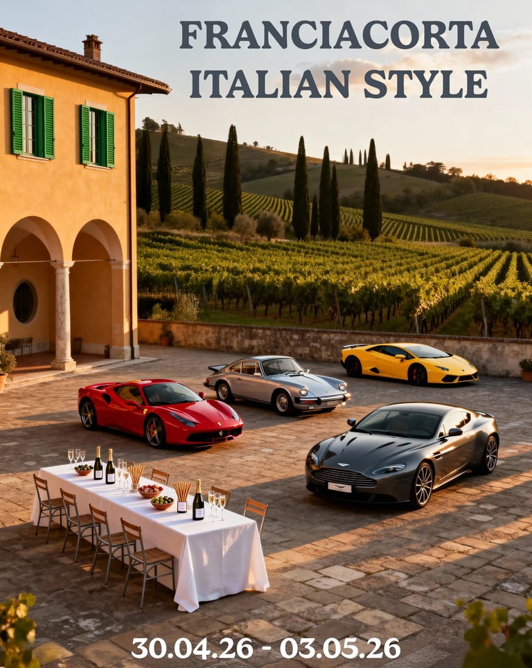 Fahrt entlang des Iseosees und durch die Weinberge Franciacortas. Private Finca mit Pool als Basis – klare Tagesetappen und ausgewählte Stopps. Besuche bei Franciacorta-Weingütern mit Kellerblick und Verkostungen;